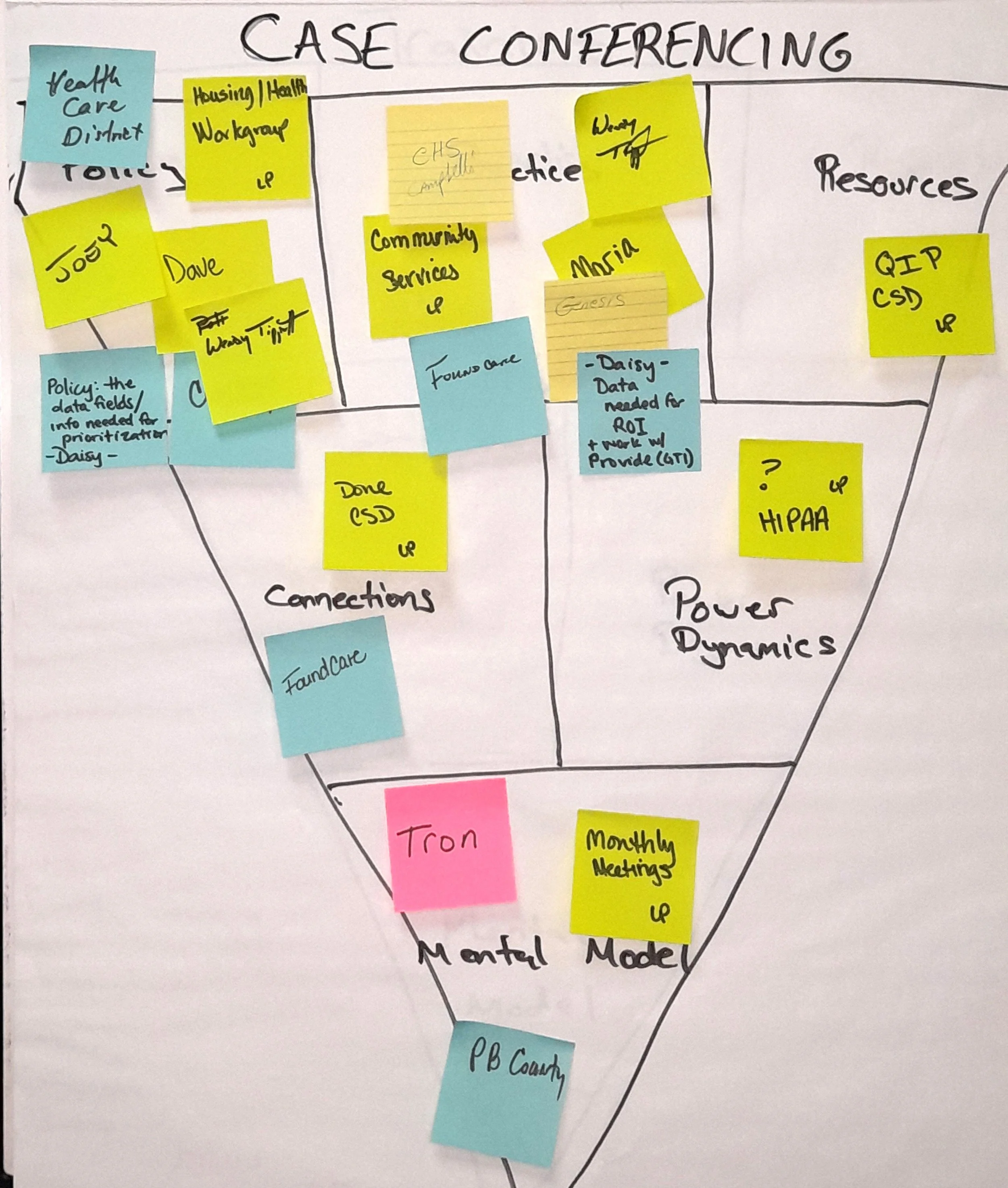 Case conferencing between the housing and healthcare systems: Since traditional case conferencing can’t meet all of their needs as it is too limited in focus, a new case conferencing practice will allow them to better prioritize efforts for this population, including getting more specific about each client’s necessary services.